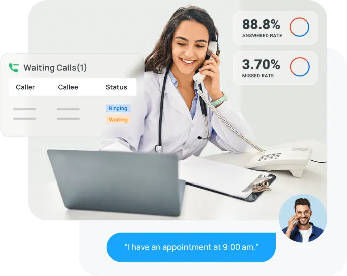Automatische oproepverdeling, IVR, terugbelverzoeken in de wachtrij, en meer om de oplossing van oproepen te versnellen en de productiviteit in drukbezochte gezondheidscentra te stimuleren.